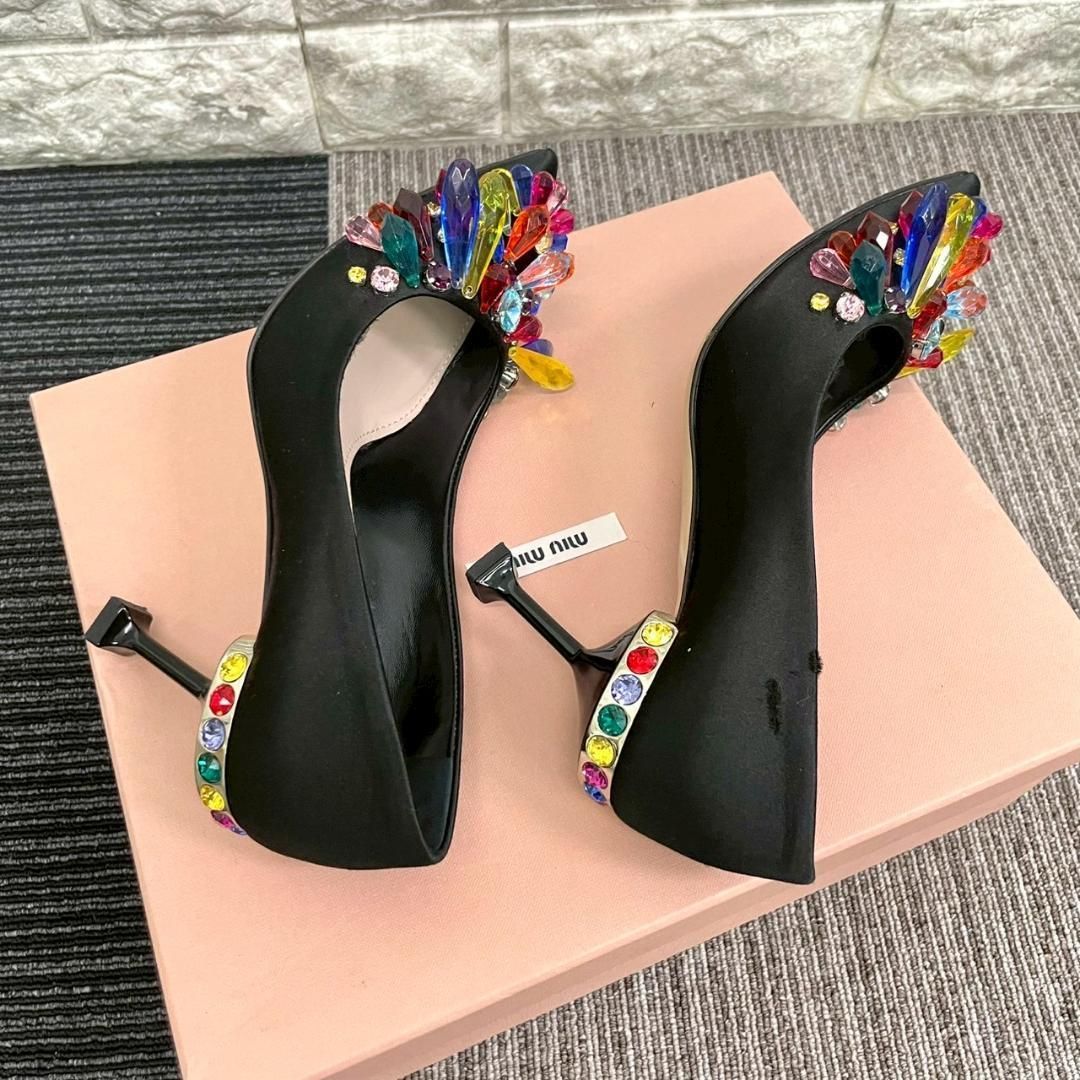 ミュウミュウ サテン マルチカラー ビジュー パンプスになります。