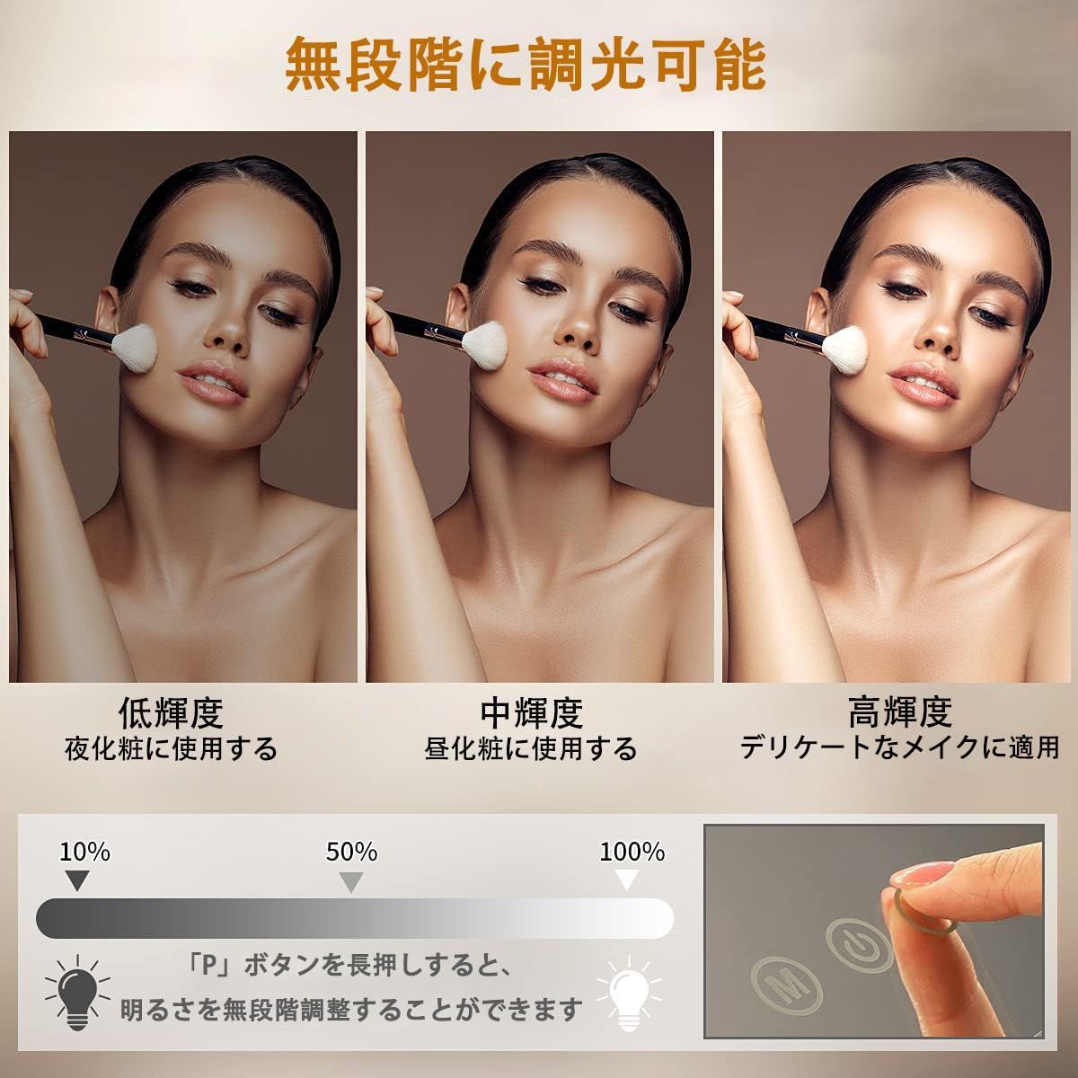 10倍拡大鏡 吸盤式10倍拡大鏡付きなので、毛穴の状態やアイラインのズレもチェックでき、肌の細やかい状況とスキンケアをしっかり把握します。視力が低下して見えづらい方に、メガネがなくてもメイクできます、メイクも便利です。