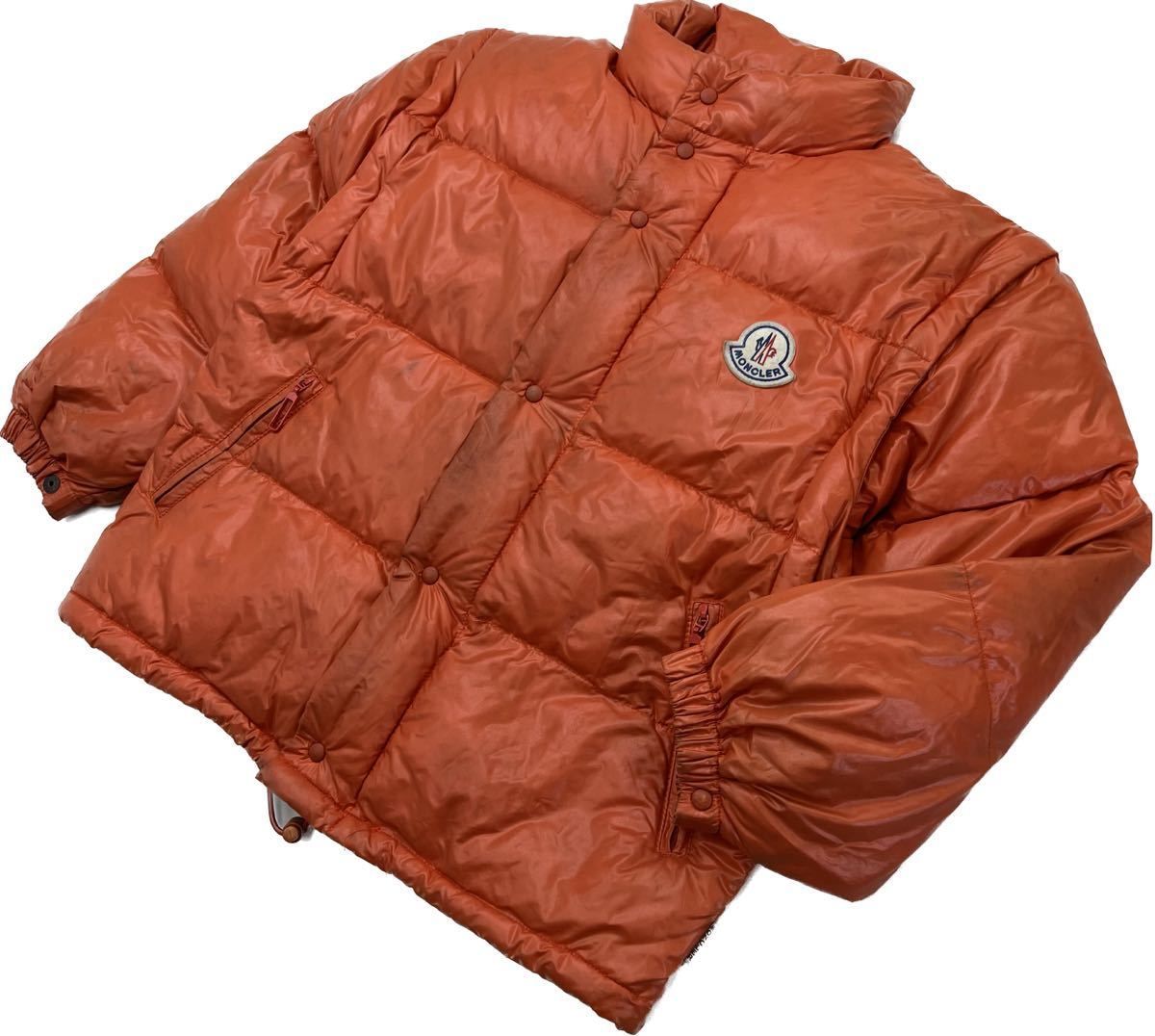 MONCLER 正規 紺タグ 8 ANS キッズ ダウンジャケット オレンジ 秋冬 防寒 アウトドア スポーツ お出かけ ビンテージ モンクレール O 137